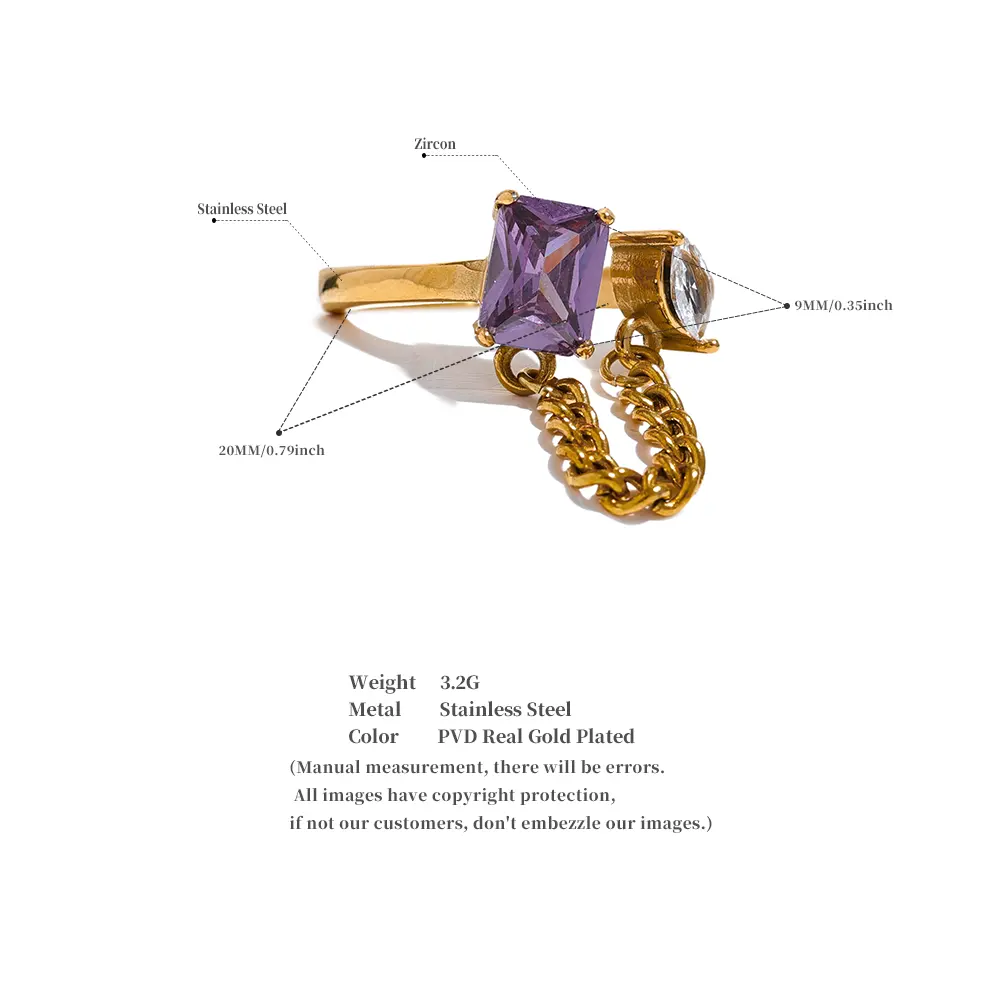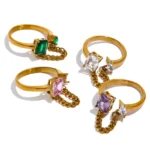 JINYOU 2553 Bling Verde Rosa Roxo Branco Cubic Zirconia Aço Inoxidável Moda Anel Dangle Cadeia Ouro Rust Proof Jóias Mulheres