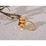 JINYOU 2795 Moda Aço Inoxidável Stereoscopic Flor De Metal Chic Anel Ajustável Mulheres Charme Golden Rust Proof Jóias Diárias