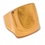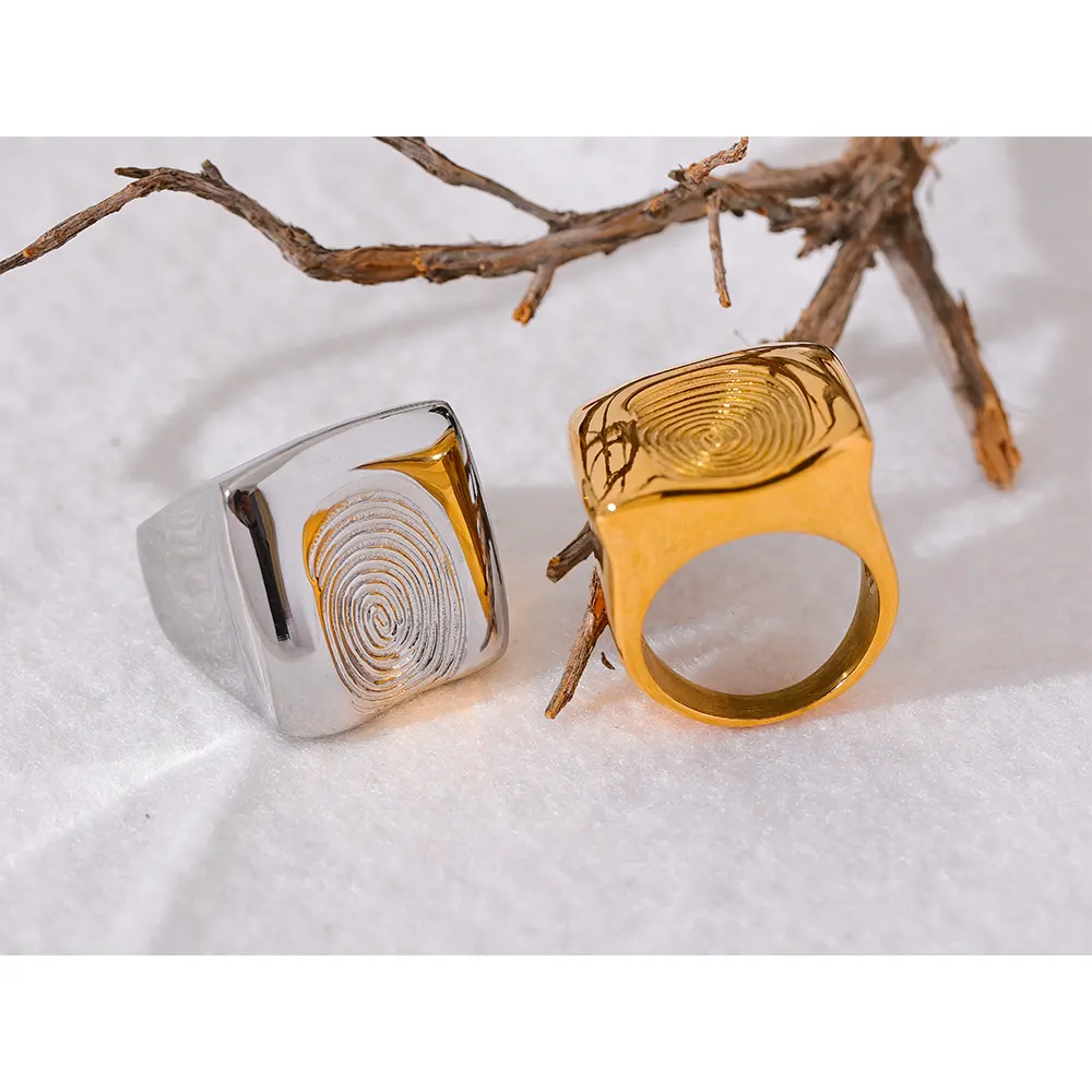 JINYOU 2833 Personalizado Aço Inoxidável Quadrado Impressão Digital Anel Largo Elegante Único Textura Metal Jóias Mulheres 18K Ouro PVD