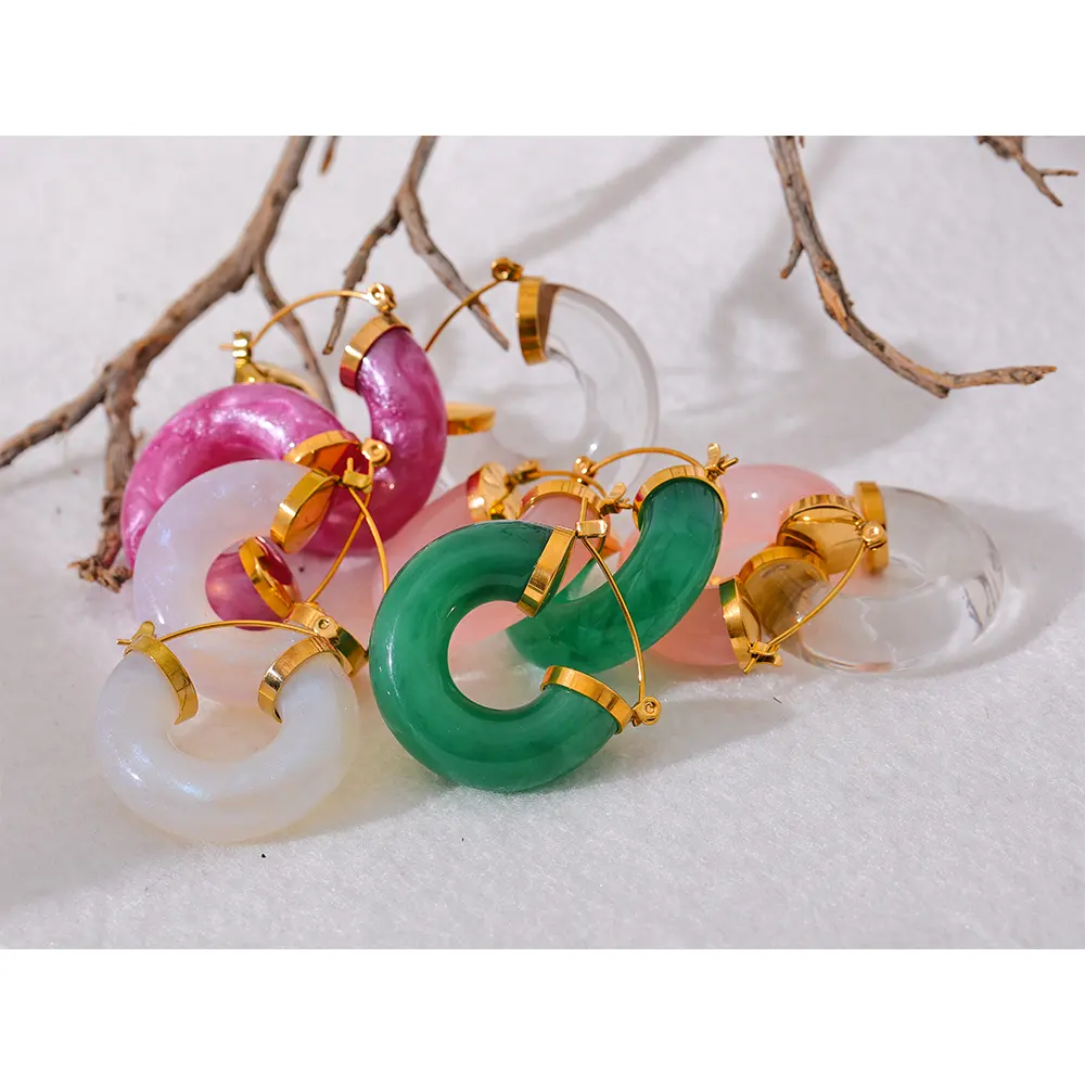 JINYOU 2841 Nova Resina Colorida de Aço Inoxidável Rodada Y2K Hoop Earrings Moda Moda Daily Wear Ear Charm Jóias Bijoux Gift