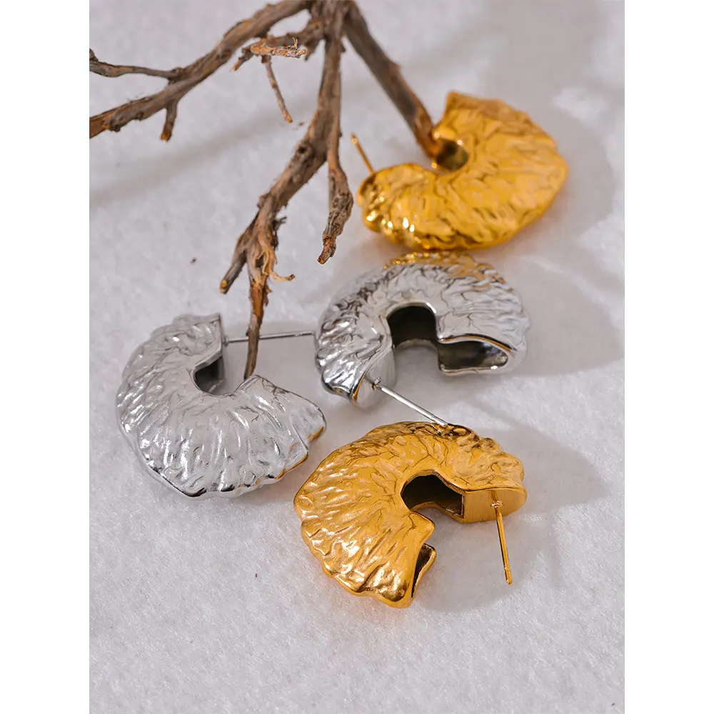 JINYOU 2844 Aço Inoxidável 316l Texturizado Moda Vintage Brincos 18K Ouro PVD Rust Proof Jóias Diárias Bijoux de Alta Qualidade