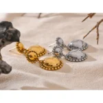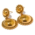 JINYOU 2849 Moda Aço Inoxidável Metal Meia Rodada Bola Gota Brincos Textura Impermeável 18K PVD Temperamento Jóias Mulheres