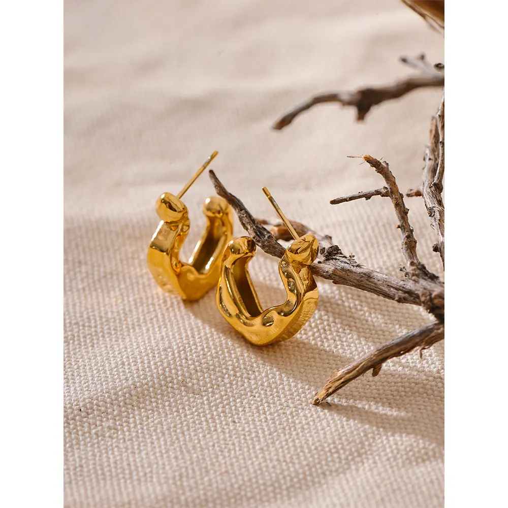 JINYOU 2861 Minimalista de Aço Inoxidável Versátil Brincos Anti Alérgicos À Prova D’ Água 18K Ouro PVD Moda C-shape Jóias Bijoux