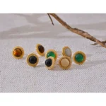 JINYOU 2881 Exquisite Pedra Natural de Aço Inoxidável Rodada Pequenos Brincos Impermeável Moda de Alta Qualidade Diária Jóias Bijou